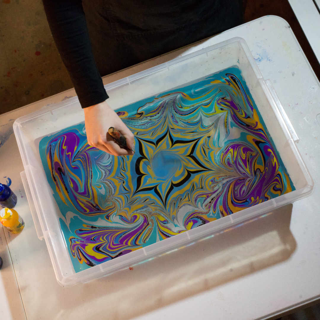 Students will be introduced to this ancient yet ever-evolving art form and guided through a demonstration exploring various techniques for applying ink to the marbling bath to achieve a wide range of intricate patterns. They will then practice creating these designs themselves on paper, which can be kept, framed, or used as decorative craft paper.