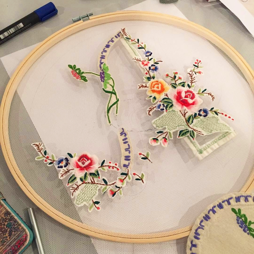 You will learn how to extract (cut out) embroidered and/or lace motifs from domestic linens; arrange them into the shape of a letter which references a friend or loved one and pin the motifs to tulle on an embroidery hoop.