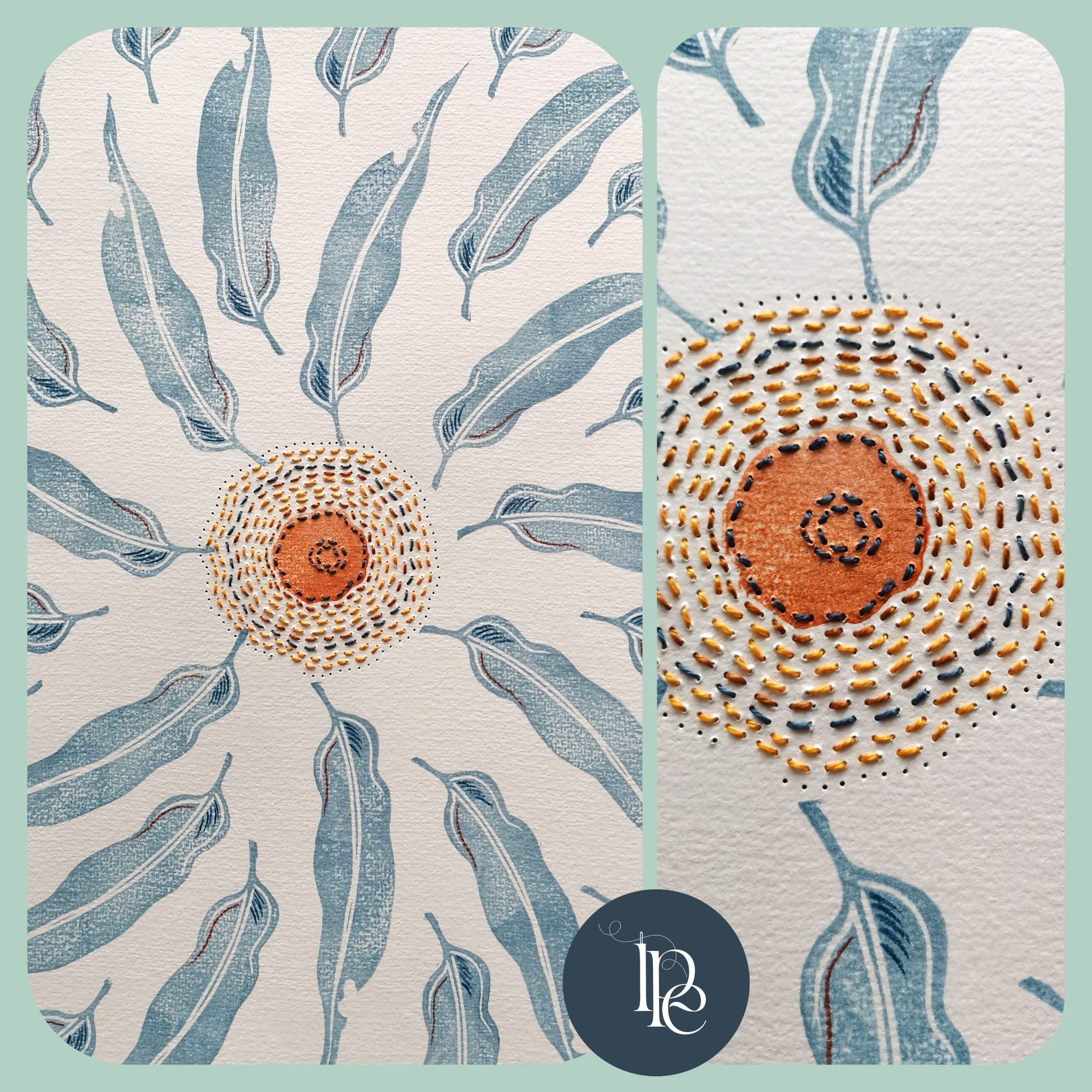 Using the Eucalypt leaf as inspiration we will explore ways of creating a personal design through the use of rubber stamping and mark making with hand stitching on mixed media card.