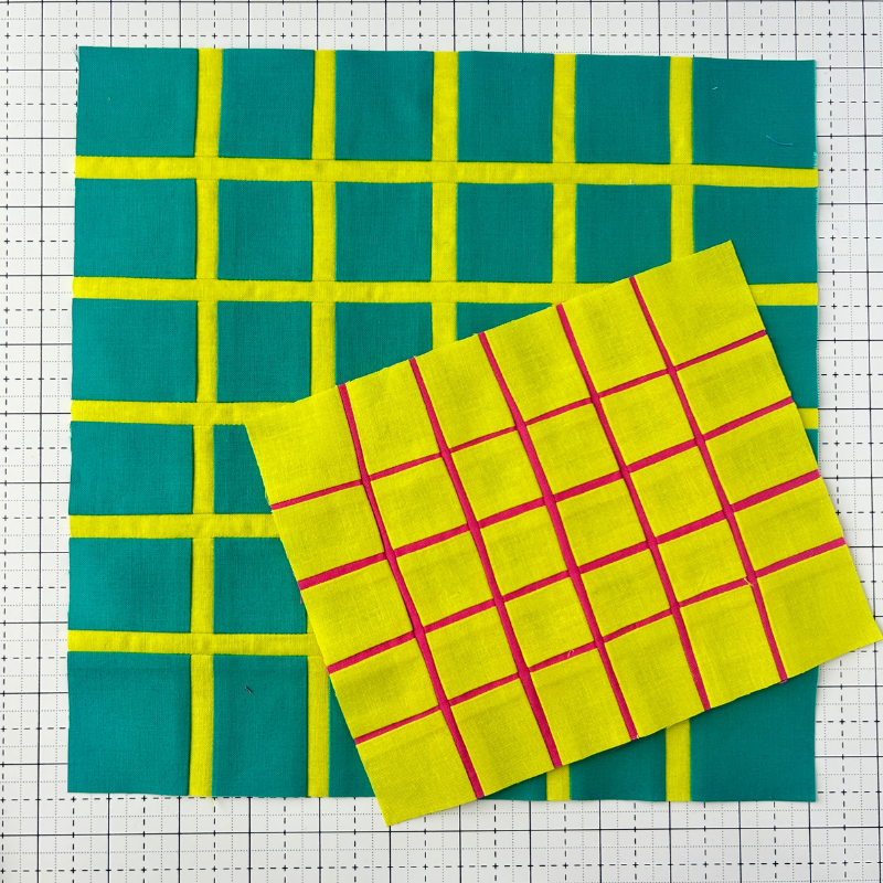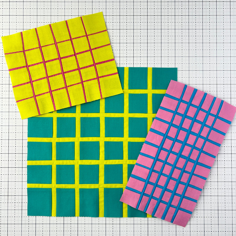 Note: You could experiment here with your extra fabrics, a combo of solids and prints could work but make sure you have good contrast! If you are planning to go on to make a quilt or project like Grid Pages, bring things that will work together.