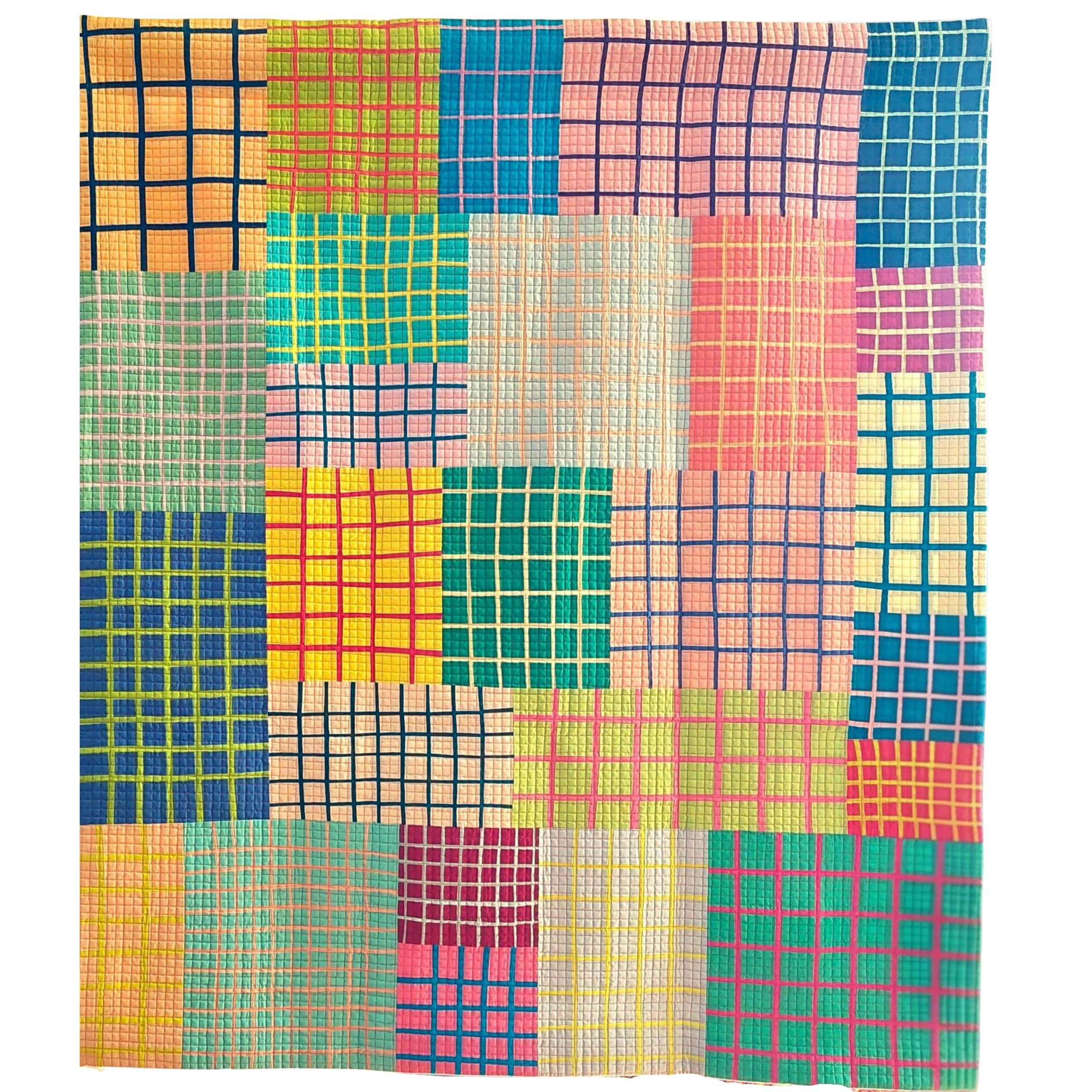 Suitable for beginners and more experienced quilters alike, class participants may choose to use their blocks to begin a full-scale improv project like the ‘Grid Pages’ quilt shown at right, or use the small samples in another way after class.